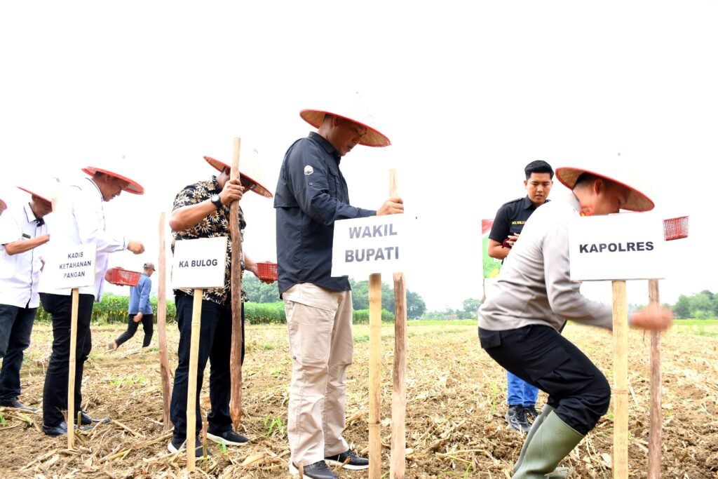 Secara simbolis, Wakil Bupati Nadirsyah memimpin penanaman jagung di lahan pertanian, didampingi oleh Kapolres dan Dandim beserta jajaran Forkompinda setempat.