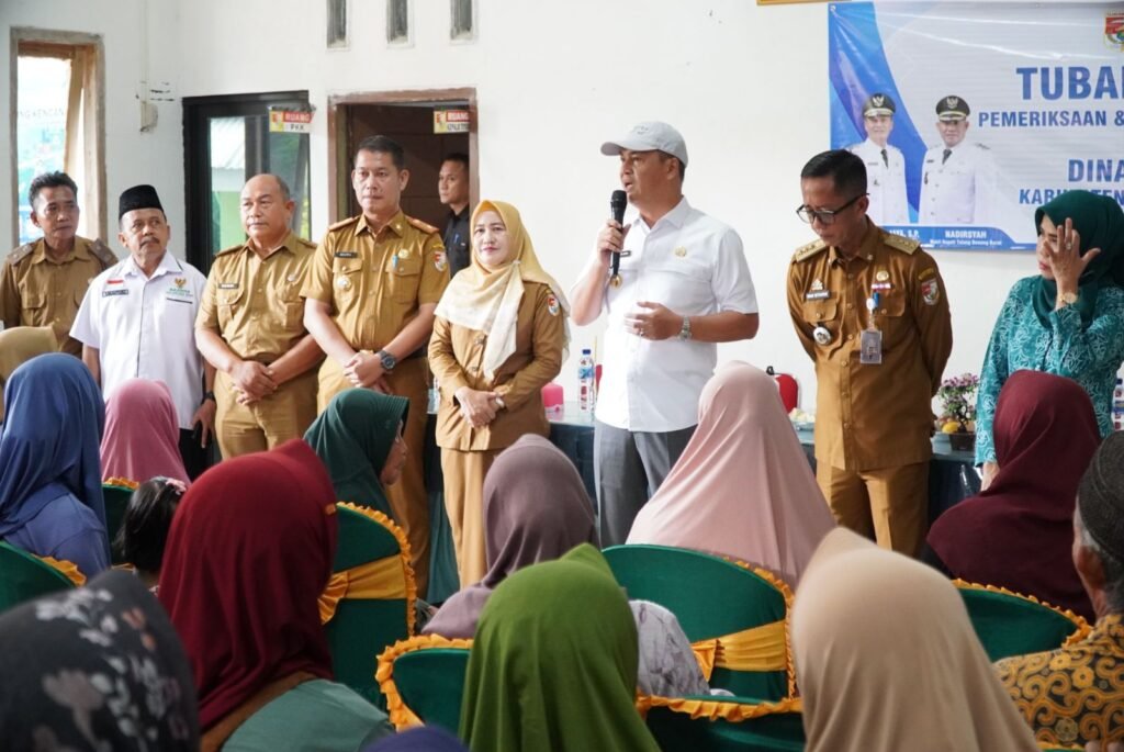 Tubabaqu.id – Bupati Tulang Bawang Barat, Ir. Novriwan Jaya, S.P., melakukan peninjauan kegiatan pemeriksaan dan pengobatan gratis dalam program “TubabaQu Sehat” yang berlangsung di Balai Tiyuh Gading Kencana, Kecamatan Tulangbawang Udik(TBU). Selasa (14/10/2025).