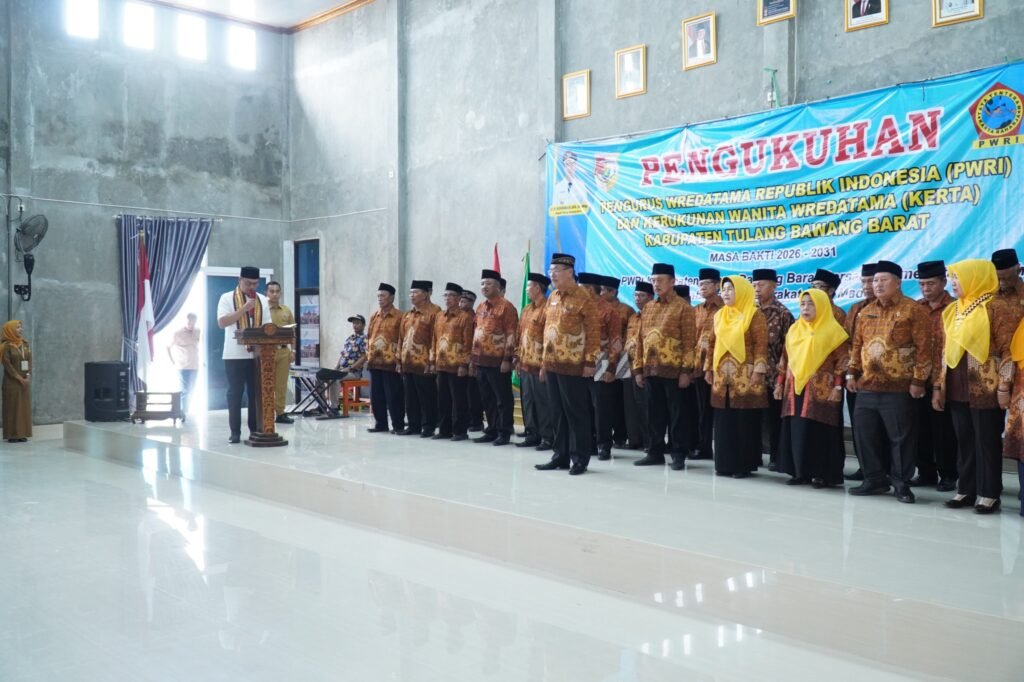 tubabaqu.id – Pengukuhan kepengurusan Persatuan Wredatama Republik Indonesia (PWRI) dan Kerukunan Wanita Wredatama (KERTA) Kabupaten Tubaba untuk Masa Bakti 2026–2031 oleh Bupati Tulang Bawang Barat (Tubaba), Ir. Novriwan Jaya, S.P.,. Kegiatan berlangsung di Gedung Serbaguna Kompleks Ponpes LDII, Kelurahan Dayamurni, Kecamatan Tumijajar, Senin (19/01/2026).